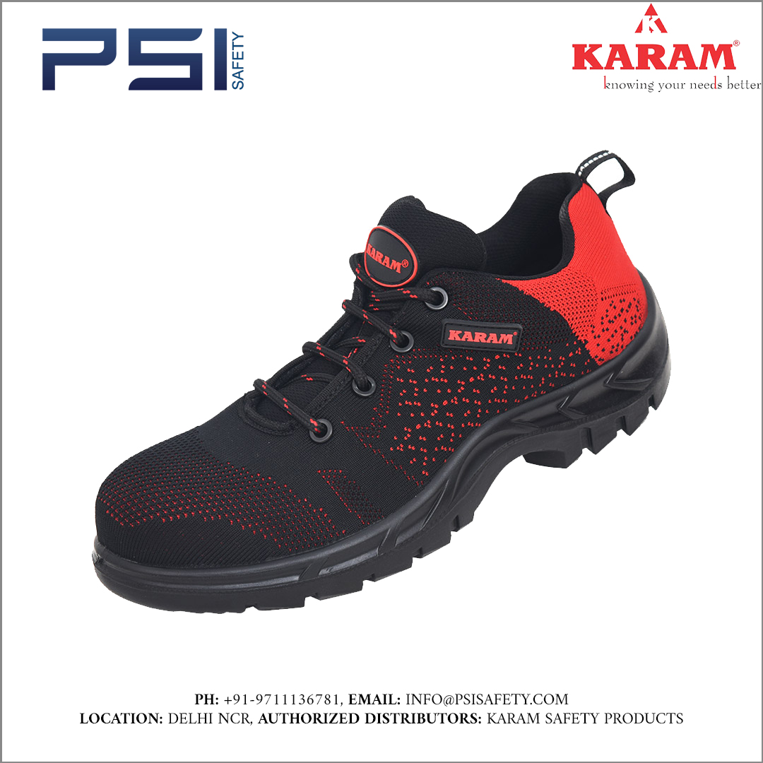 Flytex safety footwear is packed with essential features to guarantee safety in challenging situations and to provide a comfortable experience for walking and working. The range seamlessly blends breathability, comfort, safety, and style. This specific model boasts a black-red flyknit upper with a protective composite toe cap and soft black lining. It is equipped with a single-density black PU sole that offers anti-static, anti-slip, and oil & heat resistant properties. A 9-month warranty from the date of invoice covers any manufacturing defects.